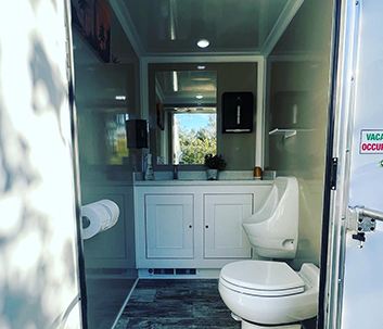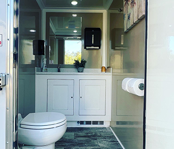 Royal Flush Luxury Latrines provides comfortable 2-stall luxury restroom trailers for weddings, parties, and special events. Based in Rancho Cucamonga, CA, we’ve proudly served the area for over 4 years. Our clean, stylish male and female toilets come with air conditioning, heating, hot and cold water, full vanities, and even a stereo system. We do not offer standard porta-potties—only luxury restrooms are available.